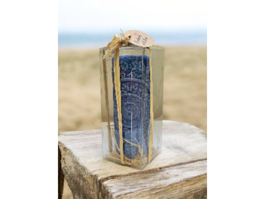 Elegantní ručně odlévaná svíčka ze sojového vosku, uložená v průhledné dárkové krabičce a převázaná přírodním lýkem, je krásným a voňavým doplňkem do každého interiéru. Modrá svíčka zdobená detailním reliéfem působí harmonicky a stylově – ideální jako dárek k narozeninám, Vánocům, svátku nebo jen tak pro radost.