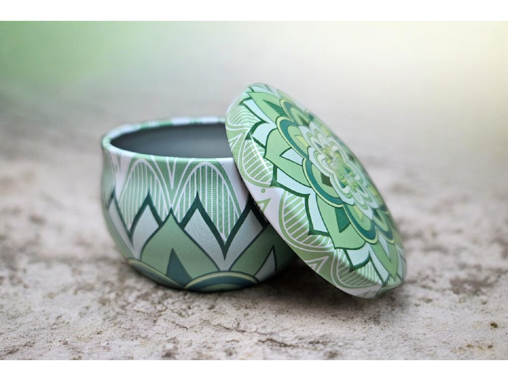 Stylová kulatá kovová krabička s jemným dekorativním potiskem je praktickým i krásným doplňkem pro uložení drobných předmětů. Hodí se na šperky, minerály, drobnosti, talismany, svíčky, dárky nebo jiné malé poklady, které chceš mít přehledně uložené a zároveň esteticky vystavené.
