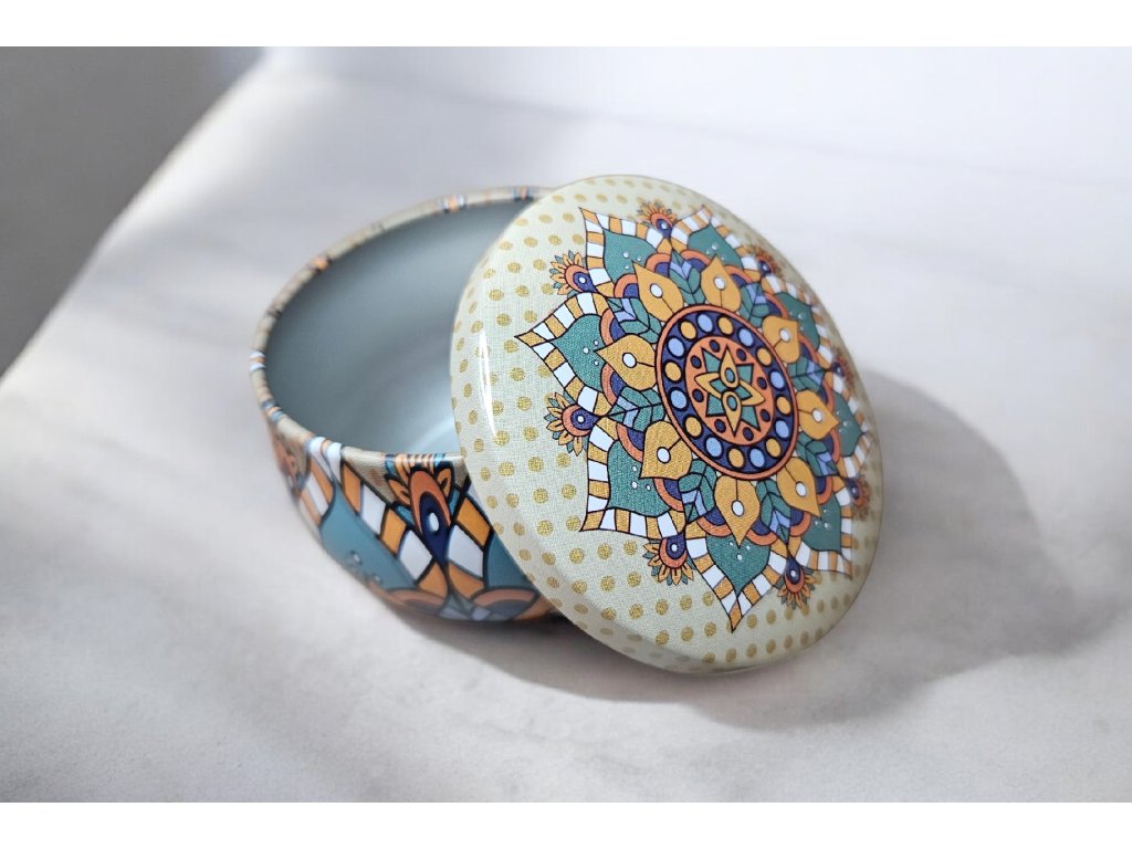 Stylová kovová krabička s víčkem je praktickým i krásným doplňkem pro uložení drobných pokladů. Zaujme jemným, detailním vzorem v harmonických barvách, který dodává krabičce originální a dekorativní vzhled. Každý motiv působí jako malý umělecký kousek a vnese do interiéru nádech elegance a klidu.