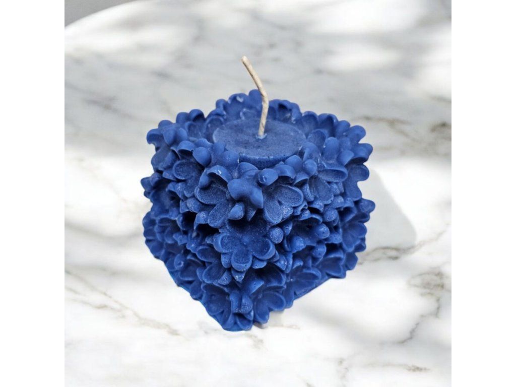 Výrazná dekorativní svíčka z přírodního palmového vosku, která na první pohled zaujme svým neobyčejným tvarem. Celý povrch svíčky tvoří plastické vrstvy ve tvaru okvětních lístků – jako by šlo o rozkvetlou květinu vytvořenou z vosku. Sytá modrá barva dodává svíčce luxusní a moderní vzhled a krásně vynikne v jakémkoli interiéru.