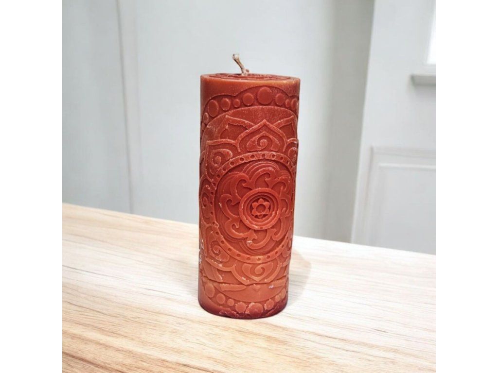Tahle krásná svíčka z přírodního sojového vosku je jako malý rituál klidu a estetiky v jednom. Na první pohled upoutá svým precizně vyrytým mandalovým vzorem, který působí harmonicky, elegantně a přinese do interiéru dotek spiritualitního stylu.