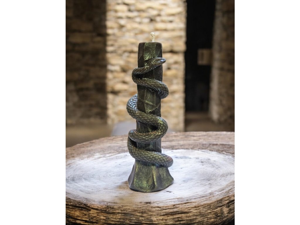 Dekorativní svíčka – Sloup s hadem (metalická edice)
