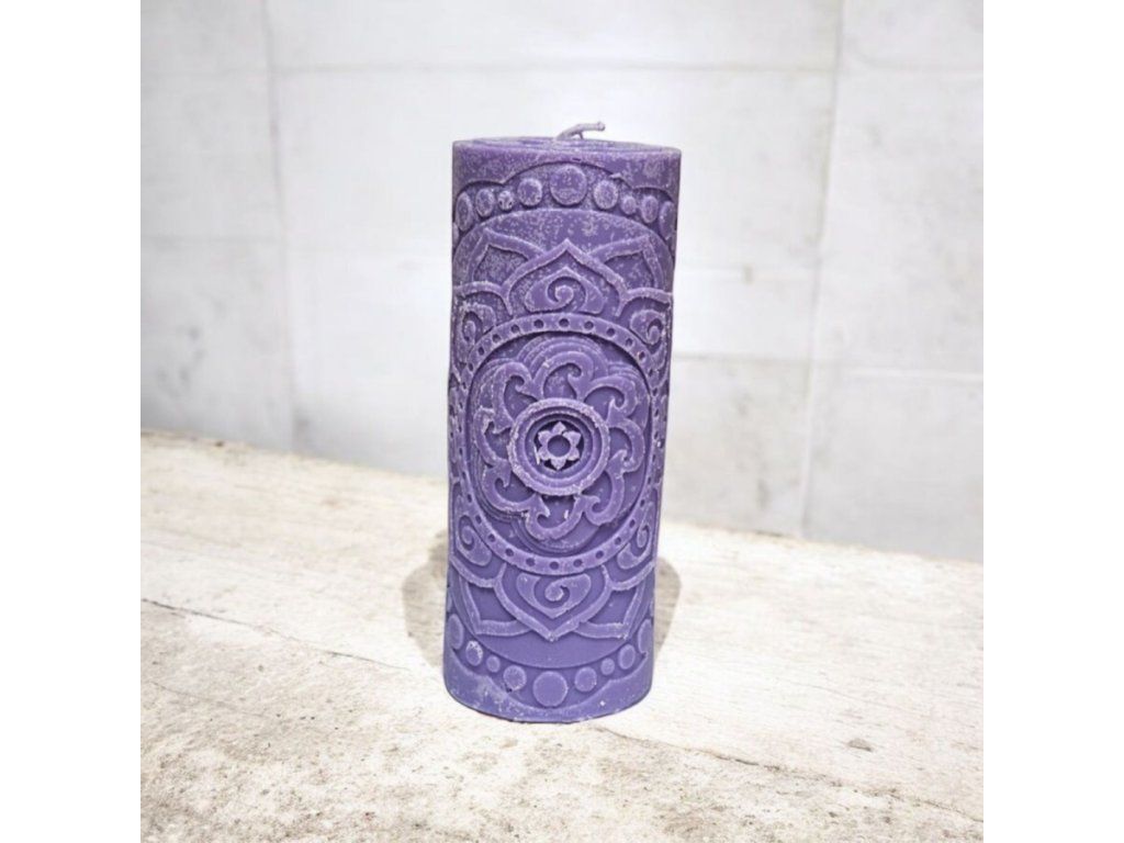 Dekorativní svíčka se vzorem mandaly – fialová (sojový vosk)