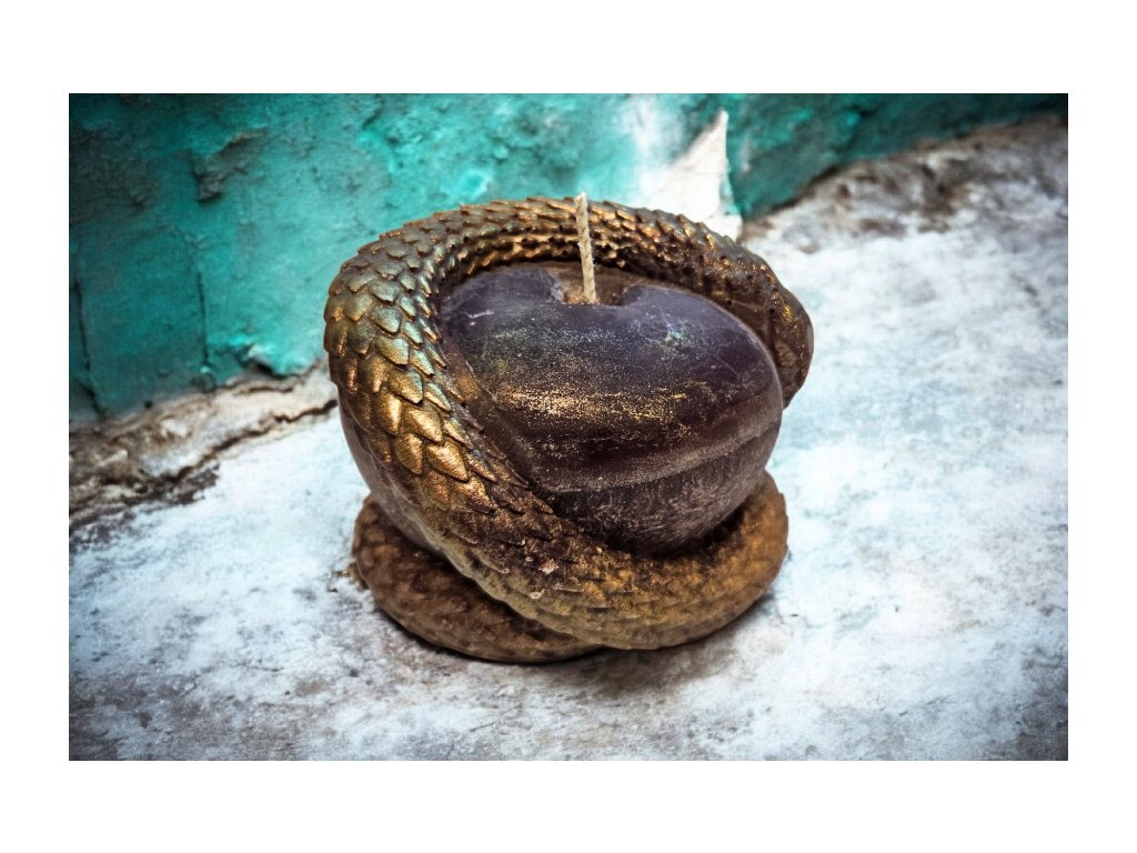 Tahle originální svíčka spojuje přírodní eleganci olivového vosku s výrazným designem zlatého hada, který se v dekorativním objetí vine kolem tmavého jádra. Výsledkem je luxusní, mystická dekorace, která okamžitě upoutá pozornost — ať už jako interiérový detail, nebo jako výjimečný dárek.