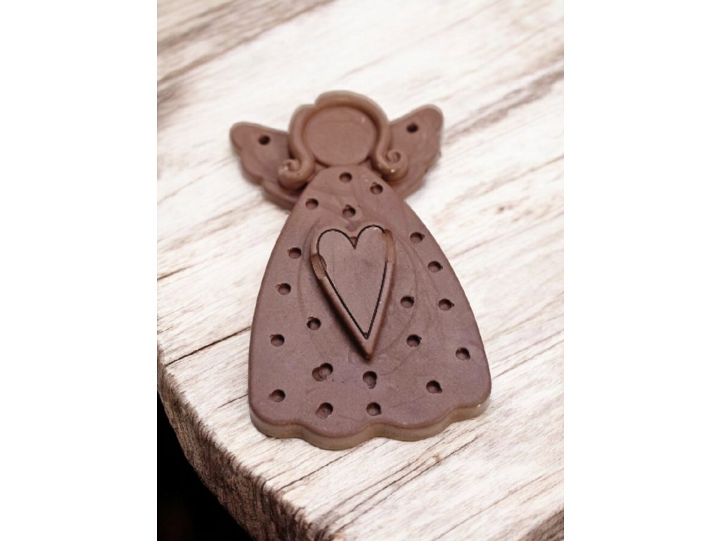 Elegantní hnědý anděl z keramiky působí jemně, klidně a zemsky — jako malý strážce domova, který v sobě nese symboliku stability a ochrany. Jeho tvar je minimalistický a čistý, s typickými zakroucenými vlásky, perforovanými křídly a výrazným srdíčkem uprostřed šatů.