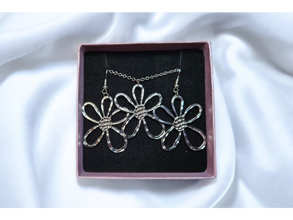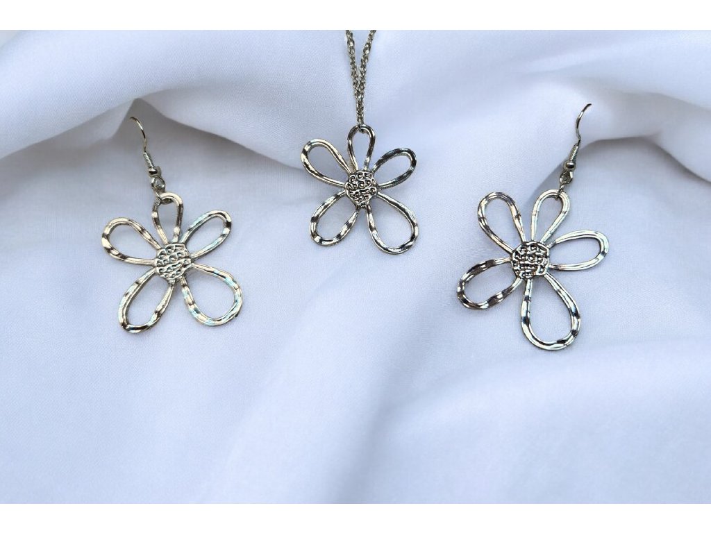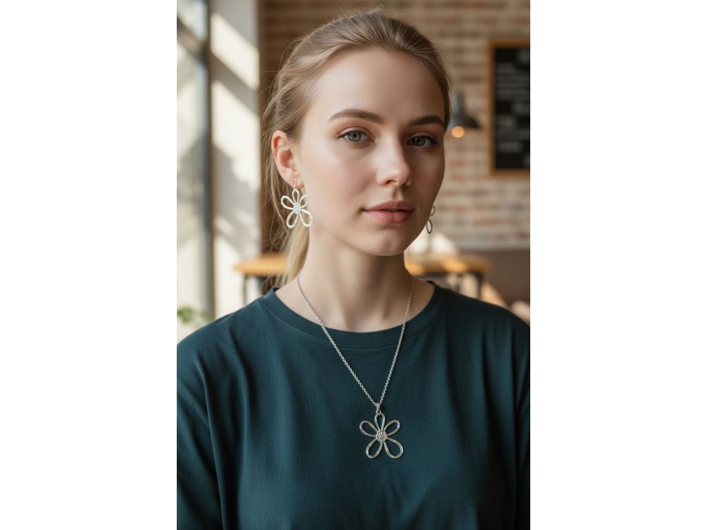 Jemná a elegantní šperková sada s motivem květiny, která působí lehce, ženský a nadčasově. Otevřený květinový design dodává šperkům vzdušnost a decentní lesk, díky čemuž jsou vhodné jak pro každodenní nošení, tak i pro slavnostnější příležitosti.