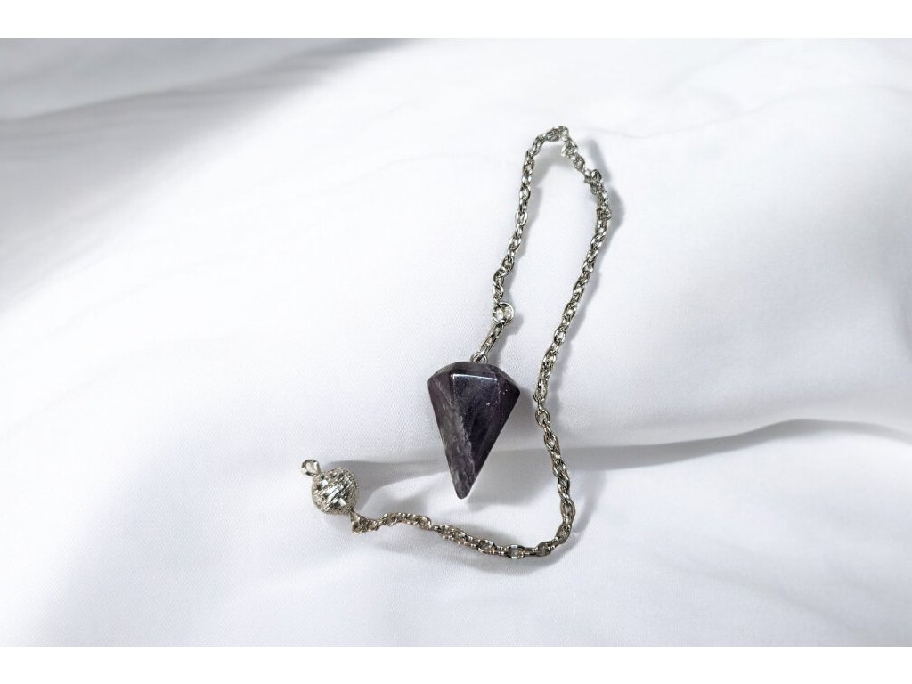 Elegantní kyvadlo z přírodního ametystu je nejen krásným šperkovým doplňkem, ale i oblíbeným nástrojem pro práci s energií, meditaci nebo osobní rituály. Precizně broušený kámen do tvaru kužele zajišťuje citlivou reakci a plynulý pohyb při práci s kyvadlem.