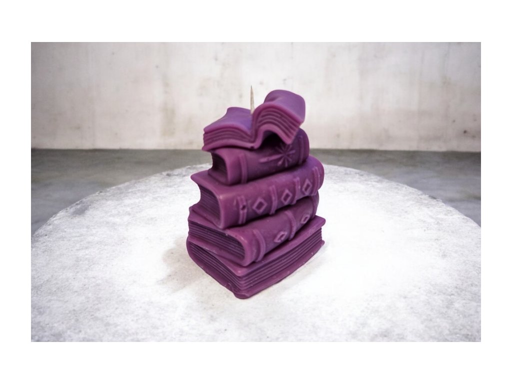 Dekorativní svíčka z olivového vosku – Magické knihy (fialová)
