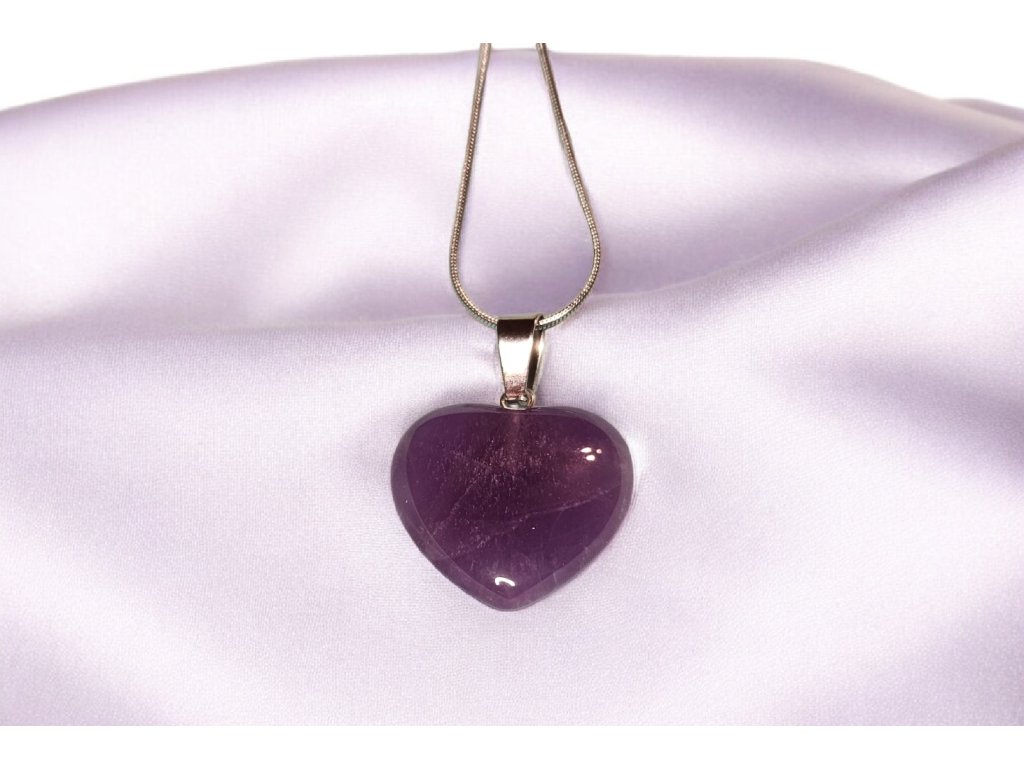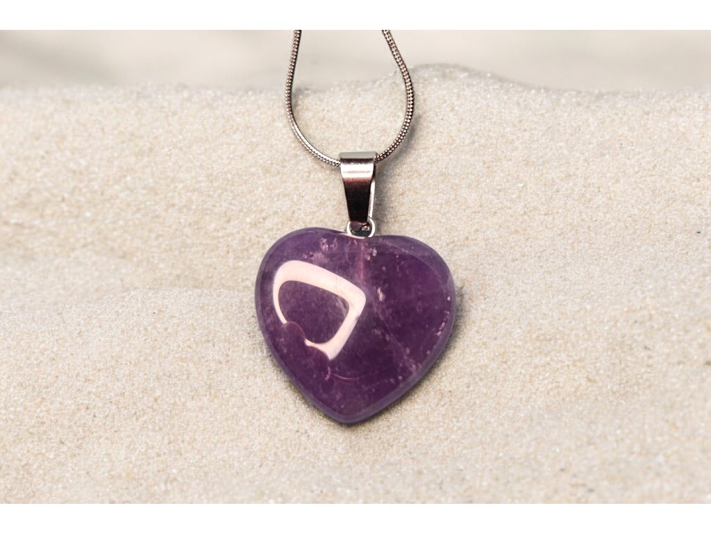Elegantní náhrdelník s leštěným přívěškem ve tvaru srdce z přírodního ametystu okouzlí svou hlubokou fialovou barvou a jedinečnou kresbou kamene. Každý kus je originál vytvořený přírodou – jemné přechody odstínů a struktura kamene dělají z každého náhrdelníku neopakovatelný šperk.