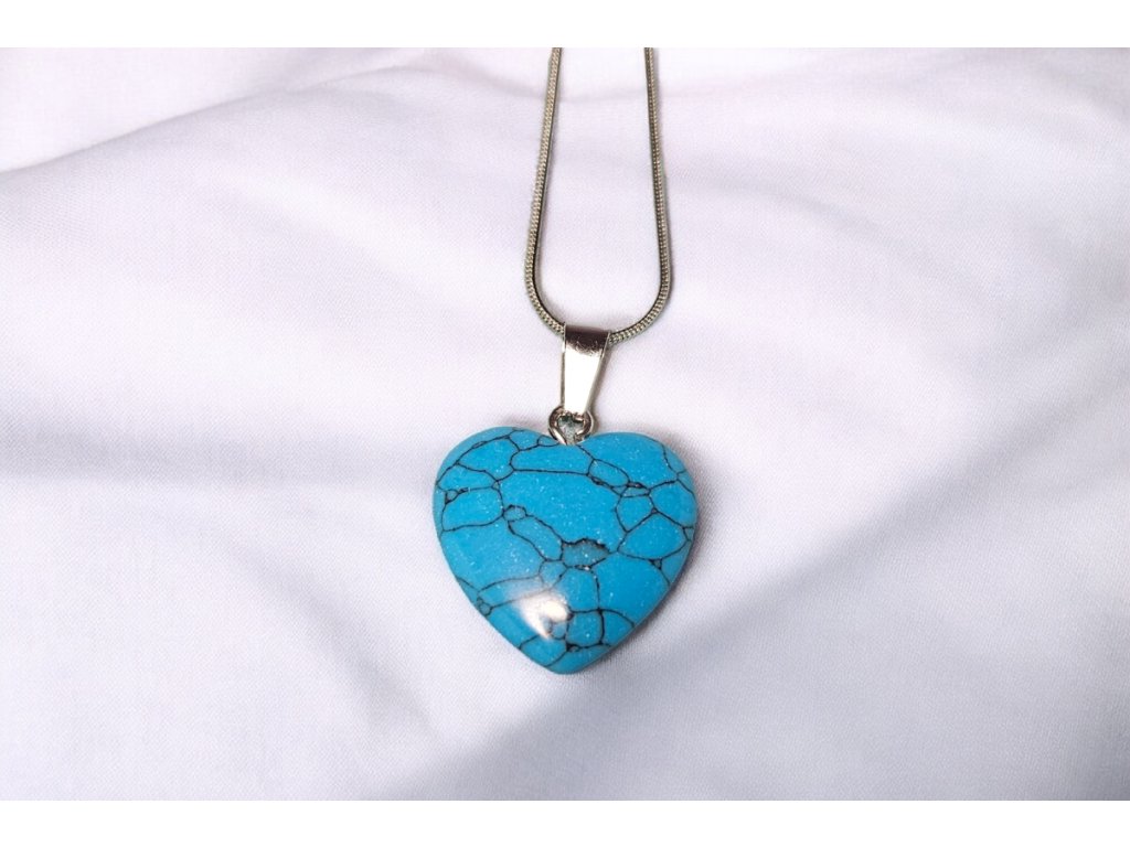 Tento náhrdelník se srdcem z tyrkenitu je jemným, ale výrazným šperkem, který v sobě spojuje krásu přírodního kamene a symboliku lásky, klidu a vnitřní rovnováhy. Srdce vyřezané z tyrkenitu zaujme svou jasně modrou barvou s typickou přírodní kresbou, která dělá z každého kusu jedinečný originál. Žádné dvě srdce nejsou stejné – každý kámen má svou vlastní strukturu, odstín i příběh.