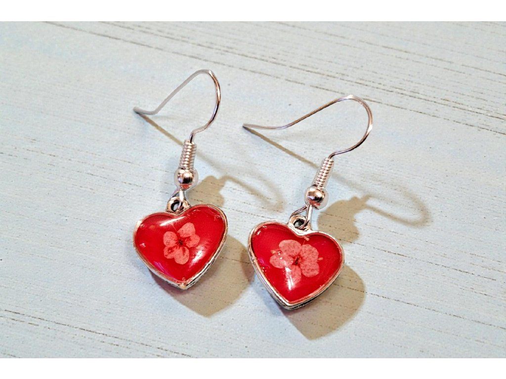 přívěsky ve tvaru srdíčka s květinovým detailem uvnitř