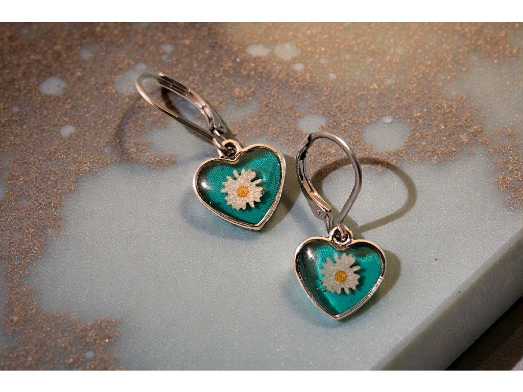 Náušnice – Srdce s Kopretinou (Tyrkysová)