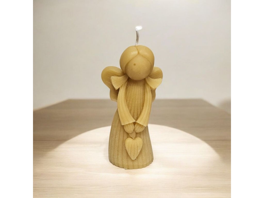 Hebký, hřejivý a neodolatelně jemný – tenhle andělíček ze světle medové voskové hmoty vnese do každého domova klid a krásu. Svíčka má měkké, oblé tvary a minimalistický obličej, takže působí jako malá soška plná čistoty. V rukách drží drobné srdce – symbol lásky, podpory a ochrany.